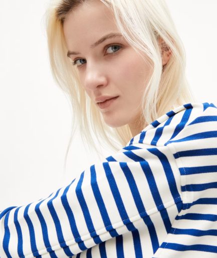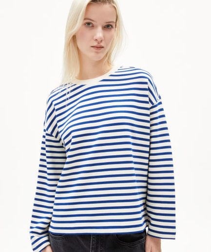 Bluză oversize bumbac organic Armedangels Frankaa Stripe LAPIS BLUE