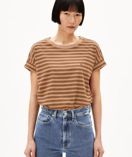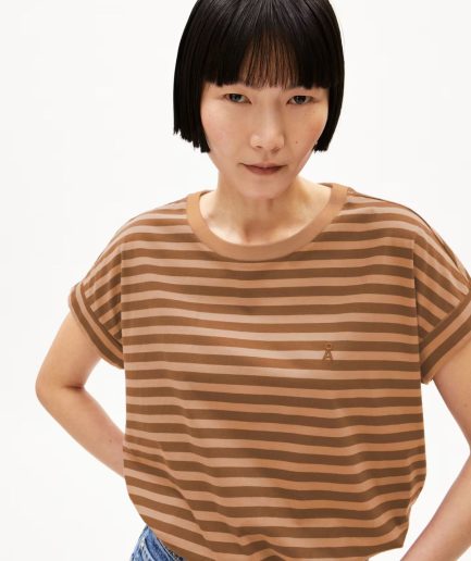 Tricou bumbac organic IDAARA Stripes umber-toasty