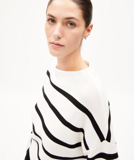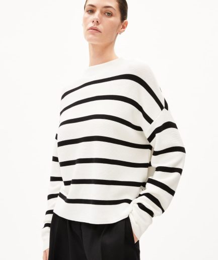Pulover bumbac organic Armedangels MERINAA Stripes oatmilk-black