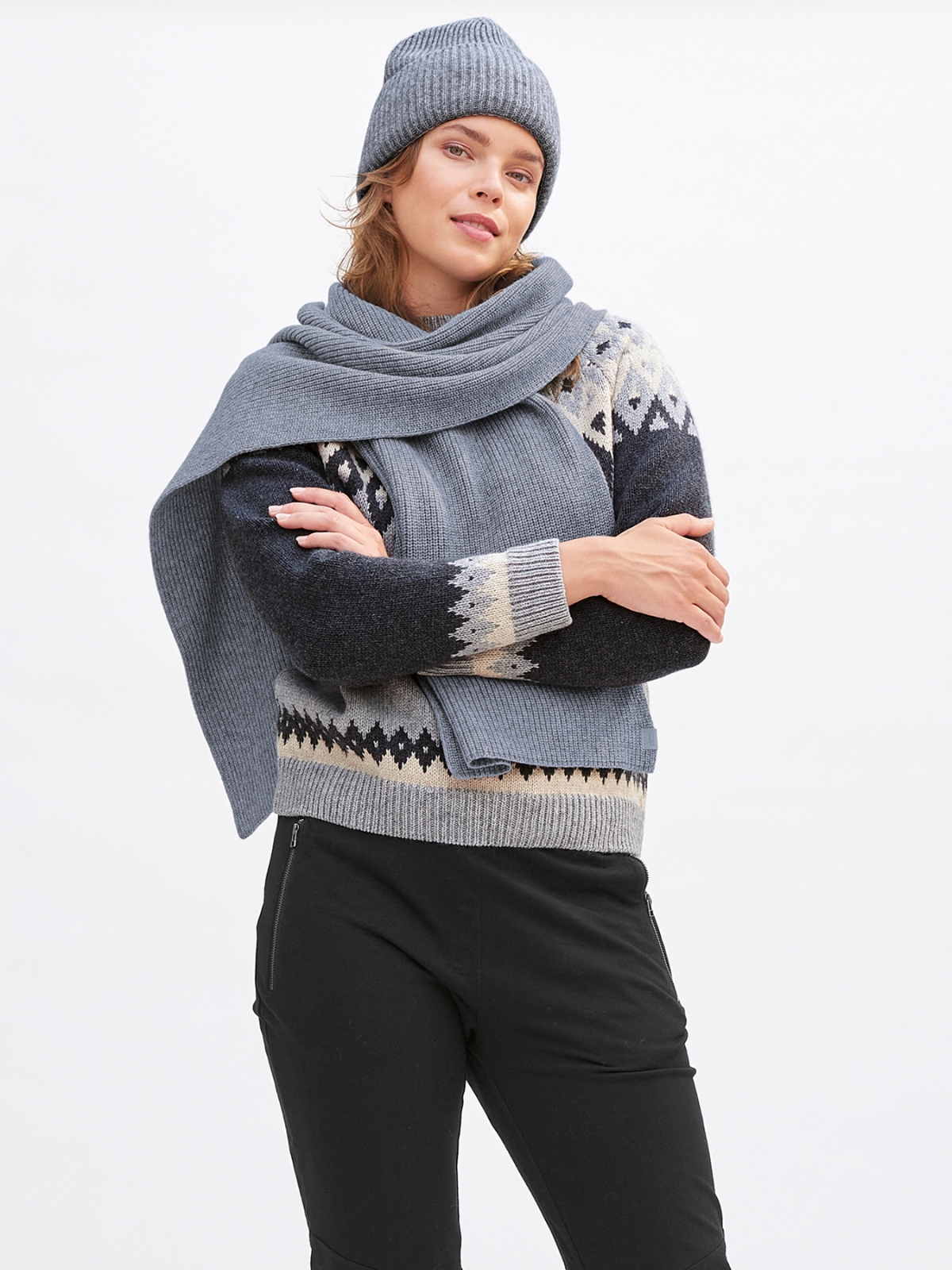 Fular din 65% bumbac organic și 35% lână organică, un accesoriu plăcut la atingere, care te va încălzi în zilele reci de iarnă.
